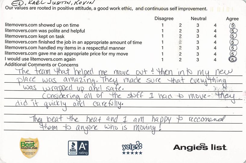 The team that helped me move out then into my new place was amazing They made sure that everything was wrapped up and safe