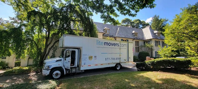 litemovers moving truck parked in front of a home in suburban Philadelphia