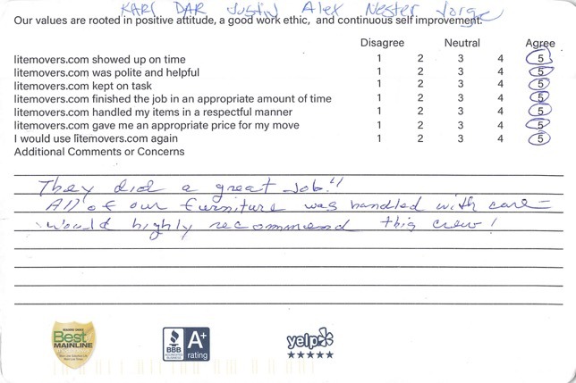 ”They did a great job!! All of our furniture was handled with care. Would highly recommend this crew!”