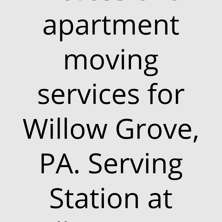 Willow Grove PA Apartment Movers | Station at Willow Grove Professional apartment moving services for Willow Grove, PA. Serving Station at Willow Grove, Regency Towers, and Willow Grove Park Mall area.January 17, 20262 Easy ways to get a FREE ESTIMATE Click below and fill out the move detail formFREE ESTIMATE Or just give us a call today at 610-755-5535